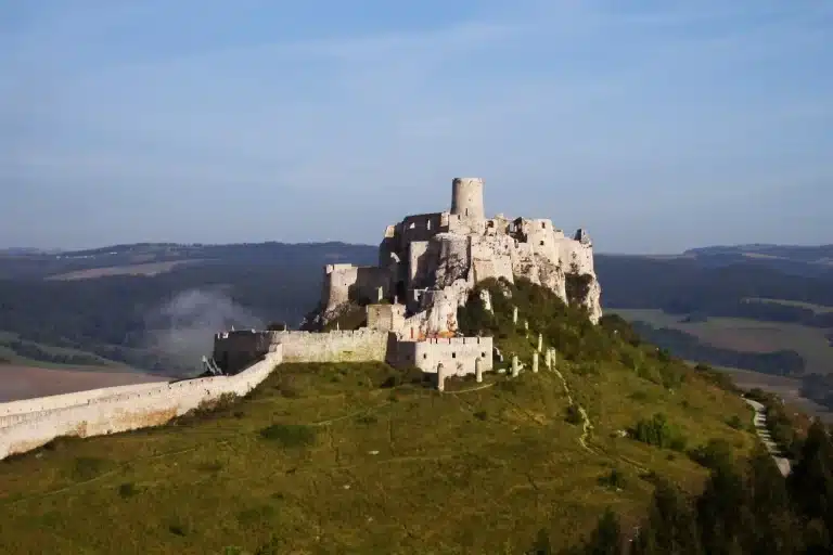 Meno Spiša sa odvodzuje od mena jeho hradu, ktorý celému okoliu suverénne dominuje. Jeho počiatky siahajú do polovice 12. storočia, hoci dávno predtým bolo na jeho mieste keltské, a neskôr na susednom kopci slovanské hradisko. Dodnes prekvapuje jeho veľká rozloha, ktorá ho radí medzi najväčšie hrady Európy, ale aj jeho monumentálna architektúra. Bol sídlom hlavných županov Spiša. Obývaný bol do konca 17. storočia. Jeho majitelia – rodina Csáky